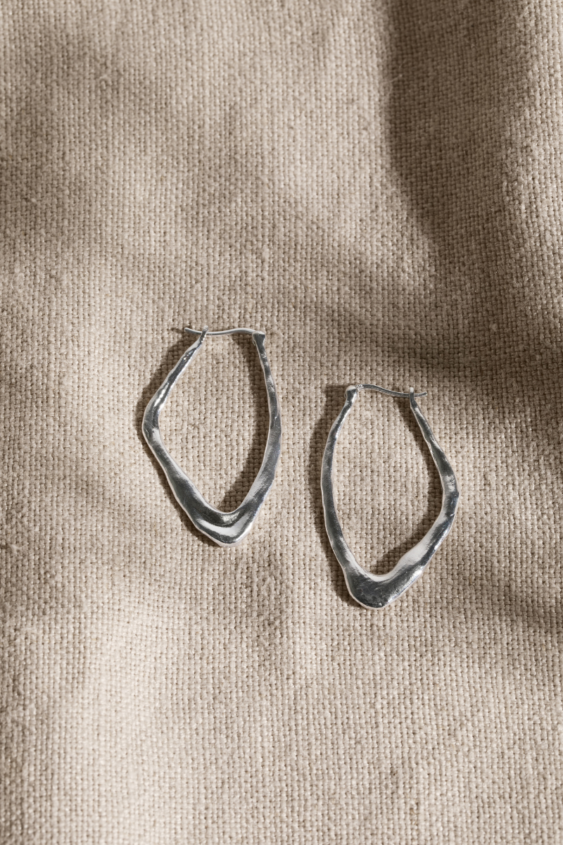 Organic Shape Hoop Earrings with a clasp lever backing.