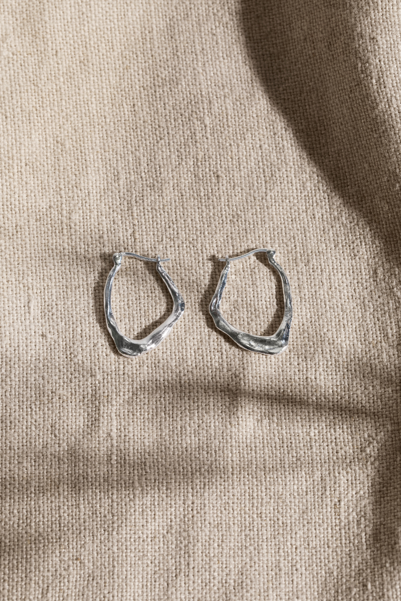 Organic Shape Hoop Earrings with a clasp lever backing.