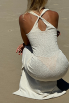 The Soul Space ribbed knit midi dress, made from 100% textured woven cotton, features a fitted scoop neck and racerback design.
