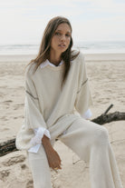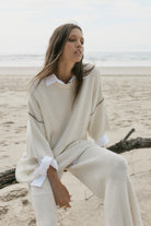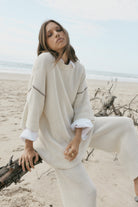 The Synergy Knit Tee is a beloved staple refreshed in soft cream with contrast chocolate seam detailing. Crafted from lightweight 100% cotton knit, this relaxed drop-shoulder silhouette offers ease and quiet structure.