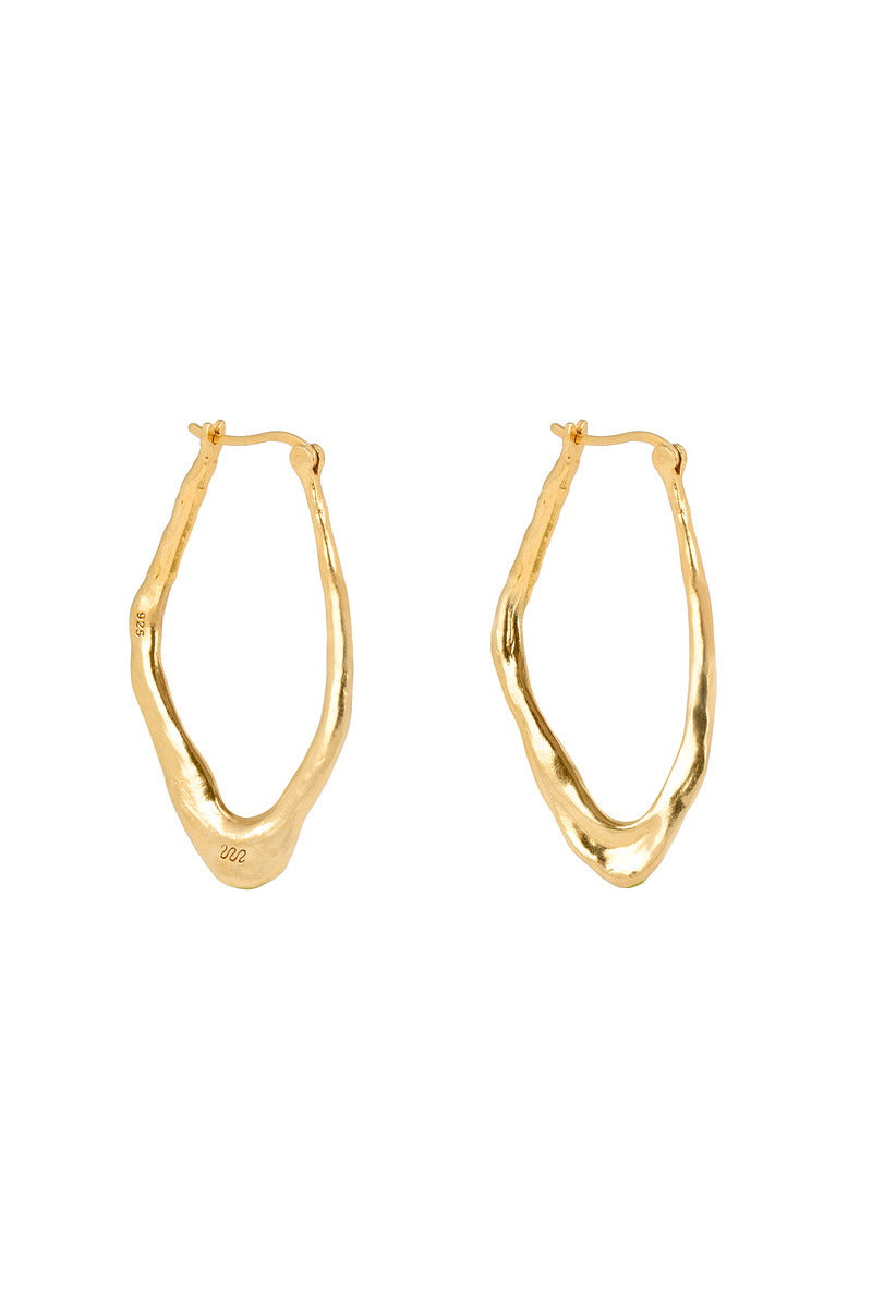Organic Shape Hoop Earrings with a clasp lever backing.