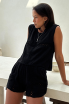 The Run With Me Tank is crafted from soft 100% cotton and detailed with hand-crochet panels for a subtle touch of texture.