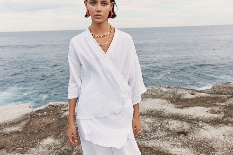 It has been said that ‘dressing for the office’ can power productivity. Working from home? Ignite creativity in relaxed, 2-piece lounge sets with just the right amount of polish. The Indus Kimono and Pant set features a soft burst of Lemon to stimulate mind and mantras and looks just as chic with bare feet as a low strapped sandal. For a sportier take, pair the Inner Peace Tee in Cream with the Sun and Moon Knit Short in Mustard.