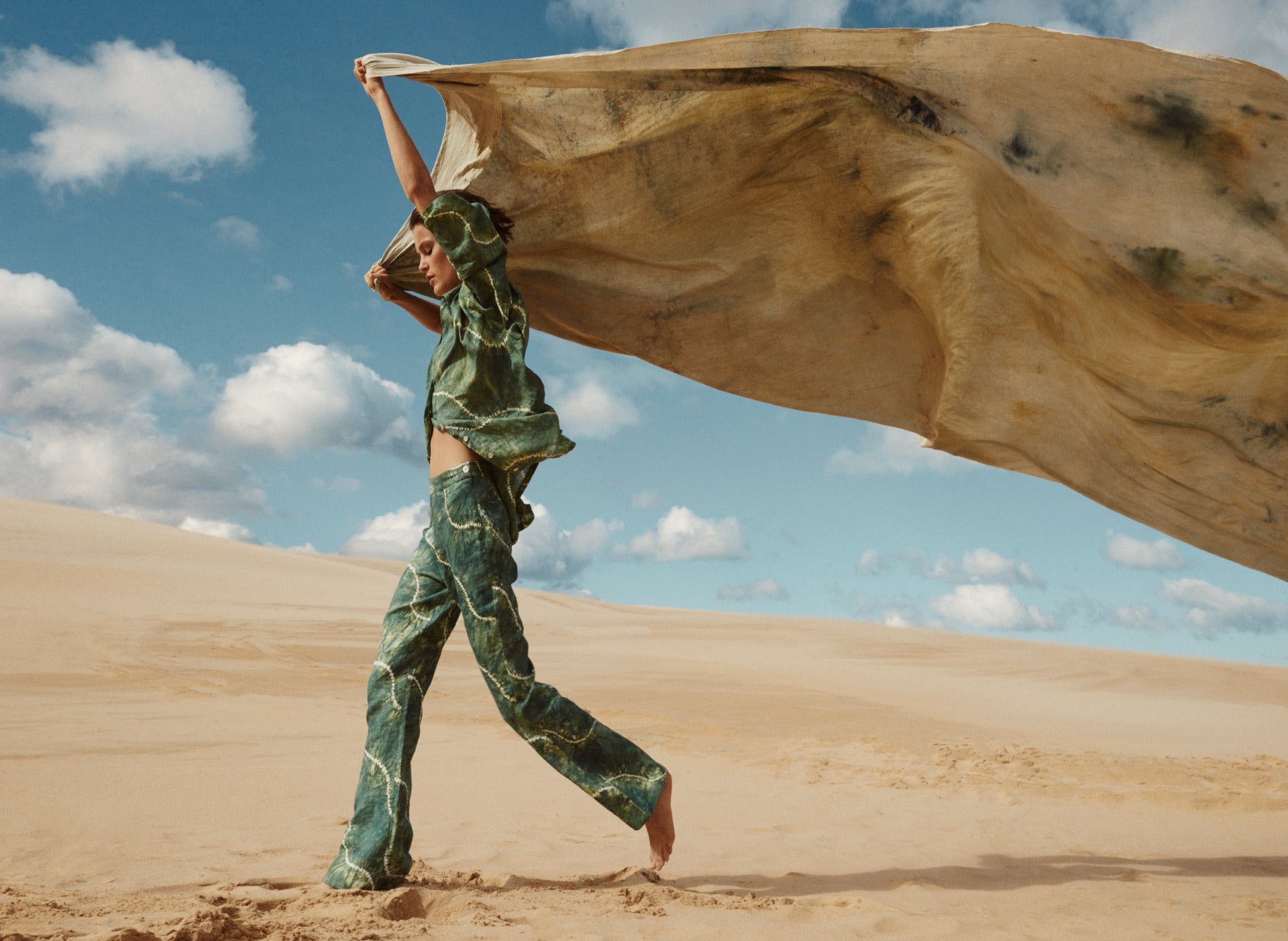 Captured aboard the Worimi Conservation Lands, PLANET HOME honours tonal simplicity and ancient hand-crafted techniques in earth-friendly fabrications. Explore undulating tie dye in seasonal Forest Green, 100% merino wool staples and a charcoal update on our best-selling crochet.