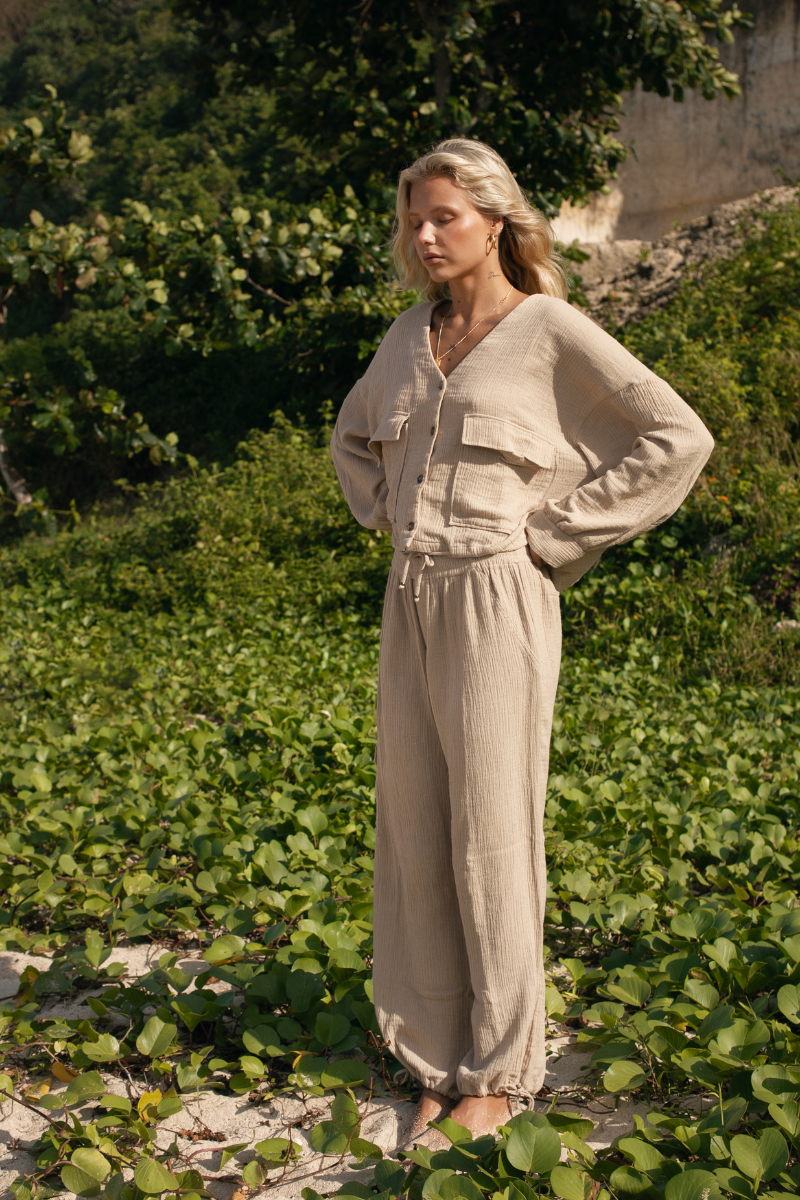 The Everywhere We Go Pant is crafted from 100% cotton.
